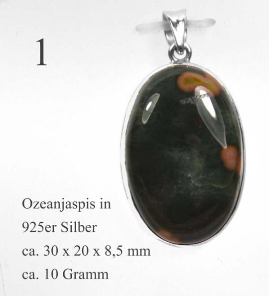 Wunderschöner Ozeanjaspis Edelsteinanhänger Silber. Der Ozeanjaspis hat einen Cabochon-Schliff und ist in 925er Silber gefasst. Bitte wählen Sie aus den Abbildungen Ihr exklusives Einzelstück.