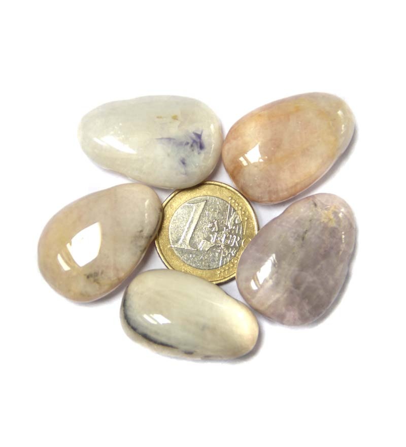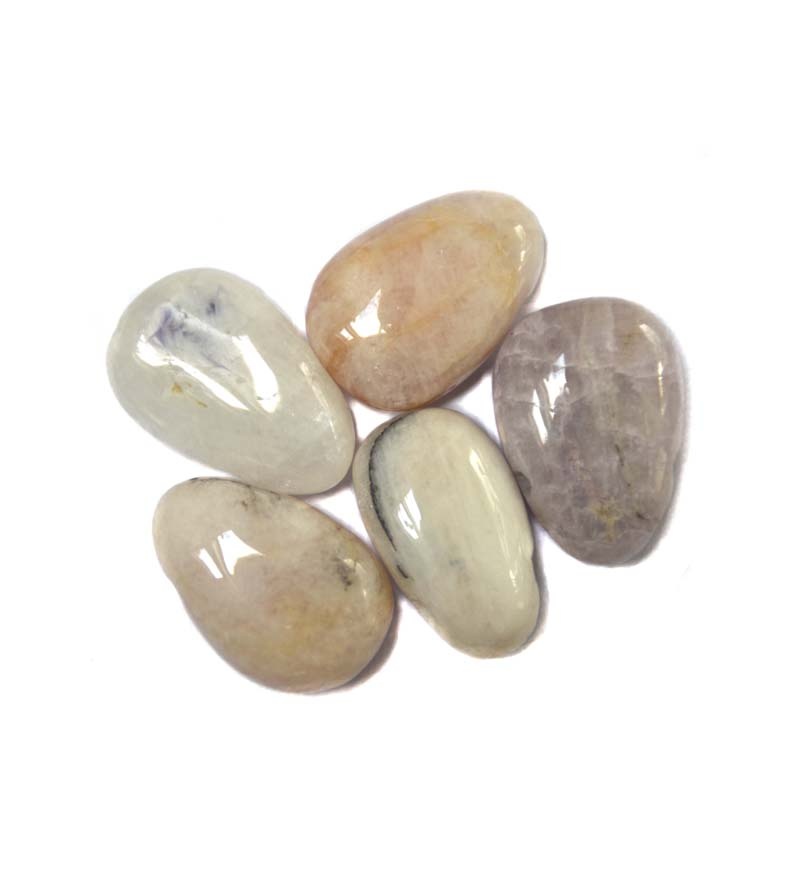 Jeder Trommelstein ist ein echtes Unikat. Das hat zwei Gründe: Zum einen weist jeder Stein von Natur aus eine ganz individuelle Färbung/Musterung auf. Der zweite Grund ist die Herstellung des Trommelsteins. Die Rohsteine werden zusammen mit Schleif- und Poliermitteln (Sand, Aluminiumoxid) und Wasser in eine Trommel gegeben, die anschließend gedreht wird. Dieser Prozess simuliert die natürliche Abschleifung durch Wasser und Sand in Meeren und Flüssen: Durch die beständige Reibung an den zugeführten Mitteln und den Steinen selbst werden Ecken und raue Oberflächen allmählich abgeschliffen und die Steine poliert. Dann werden Ihre Trommelsteine gebohrt, damit Sie sie immer bei sich tragen können.