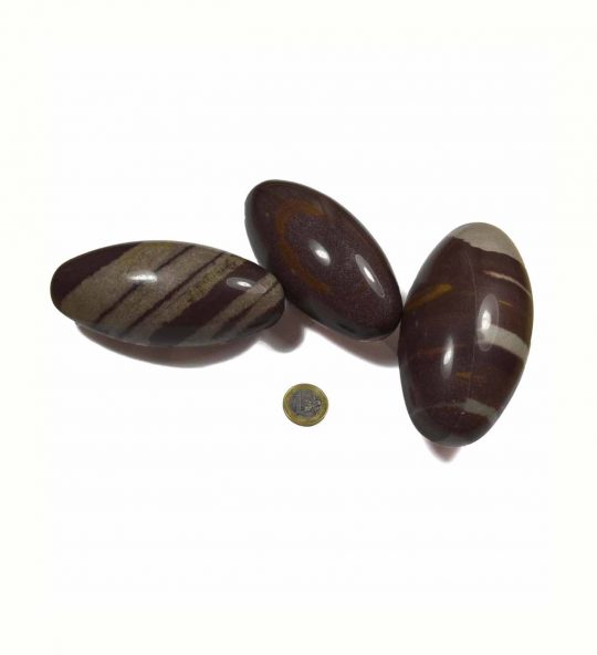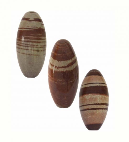 Unsere Shiva Lingams haben eine besonders schöne Maserung. Dieser Quarzit wird nur am Fluss Narmada in Zentralindien gefunden.